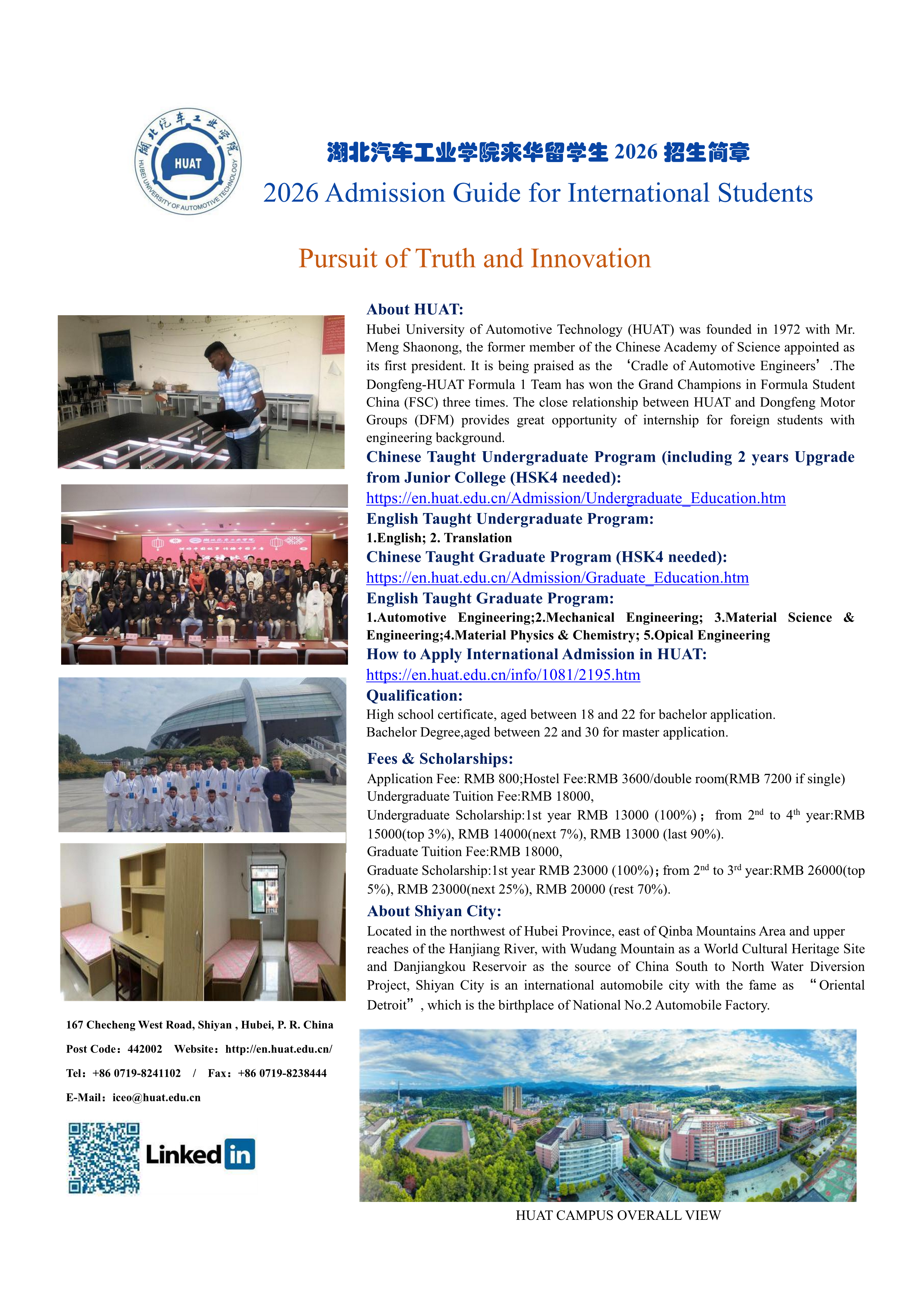 6. The formal Electronic Admission Letter will be ONLY sent from iceo@huat.edu.cn to your email address in your Application form!