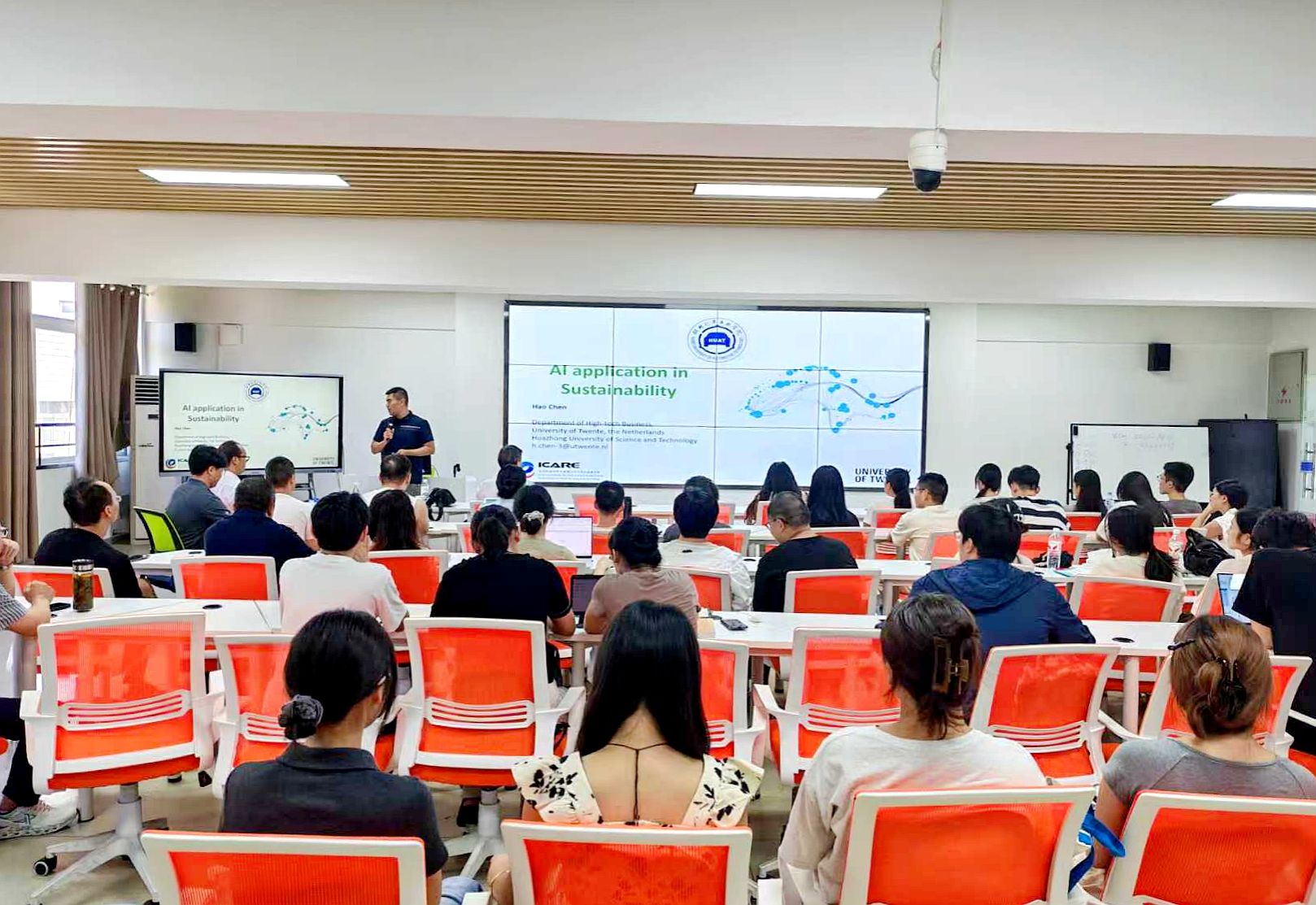 On the afternoon of the day, Professor Chen Hao delivered an academic lecture titled "AI for Sustainability" in the New Business Experiment Center.